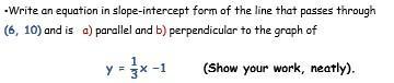 Hence, the searched line has the form y=-3x + b. Now, in order to find the y-intercept b, we must use the given point (6,10). Therefore,