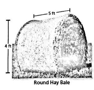 Since the radius of a circle is half the diameter, you can identify in the figure attached that the dimensions of a large round bale are: