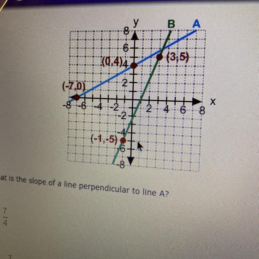 What is the slope of a line perpendicular to line A?