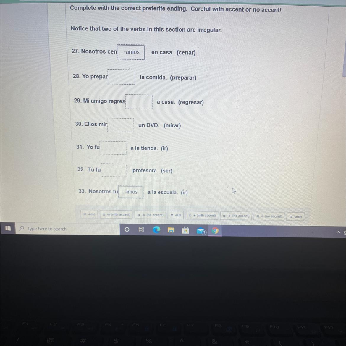 Complete with the correct preterite ending. Careful with accent or no accent!