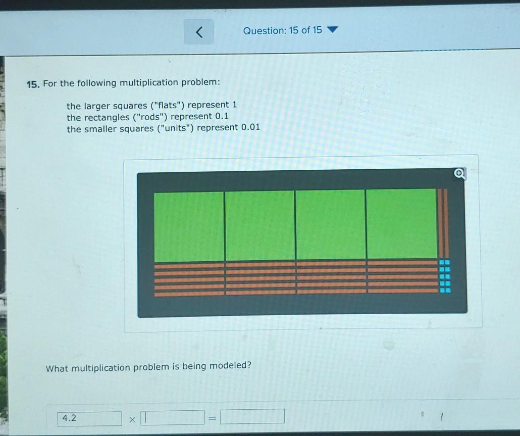 First Box: It is 4 because 1 green box equals 1.0, there are 4 green boxes, so 1 x 4 = 4.