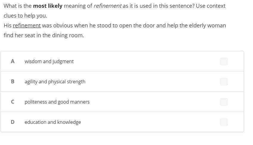 Your answer would be A.