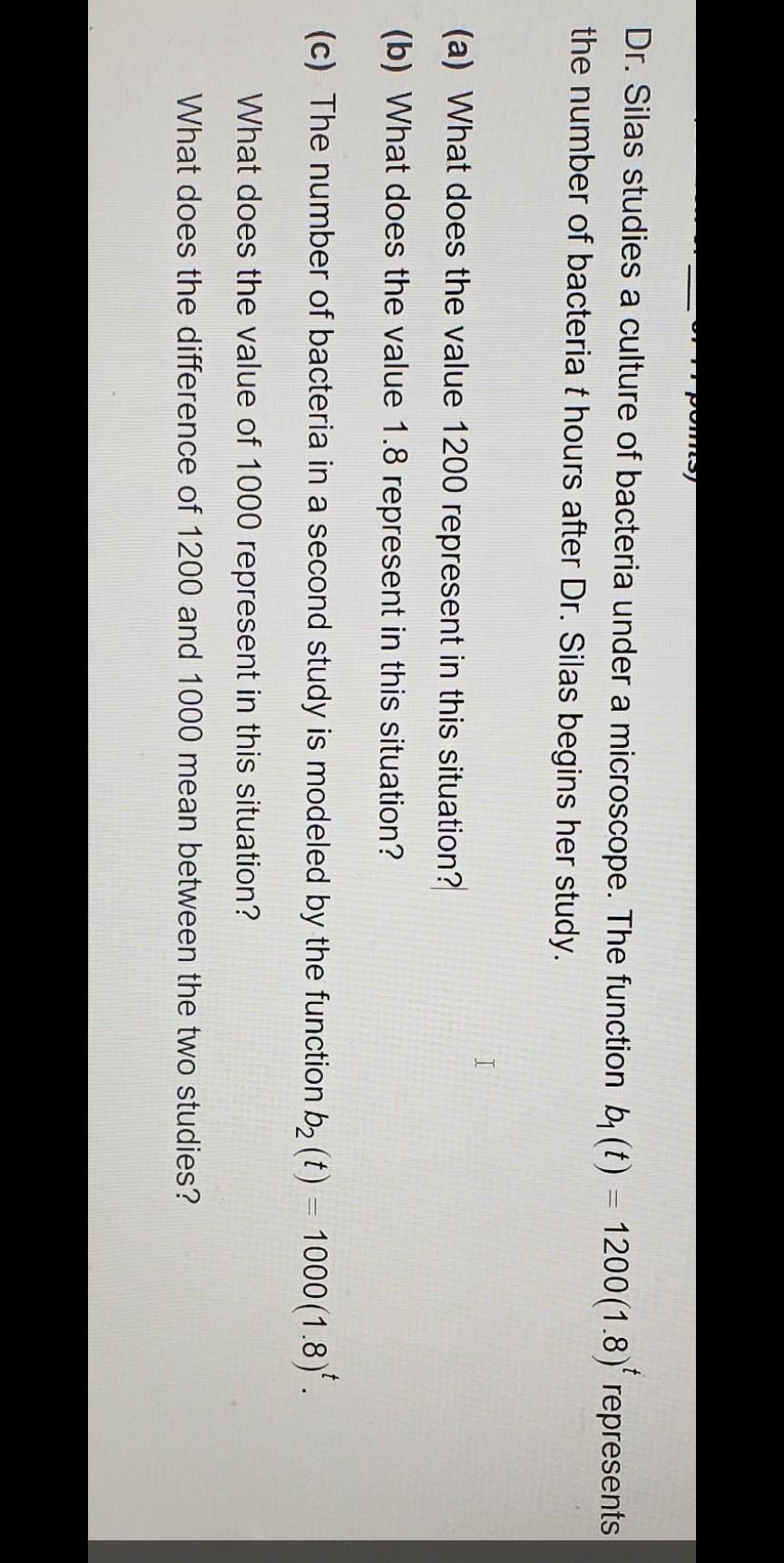In this case, 1000 will represent the initial population of bacteria for this second study.