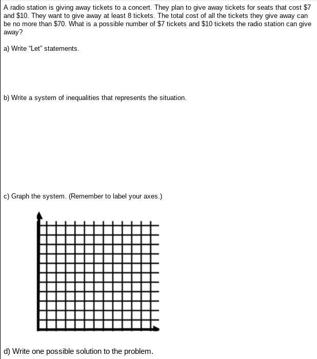 a) Let x represent the the number of tickets given out for the seats that cost $7 and let y represent the the number of tickets given out for the seats that cost $10