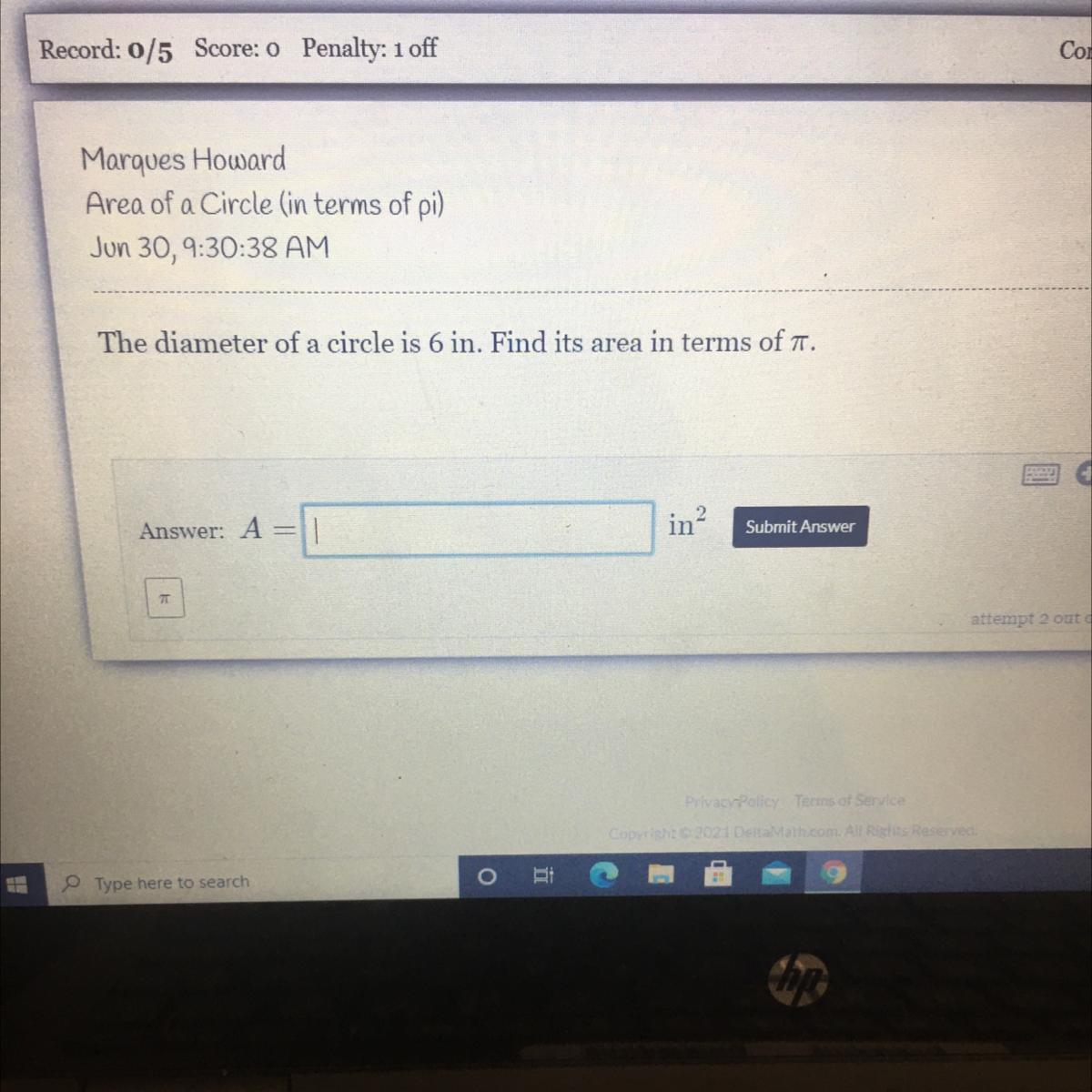 The equation for the area of a circle is A = π. However, we got the diameter.