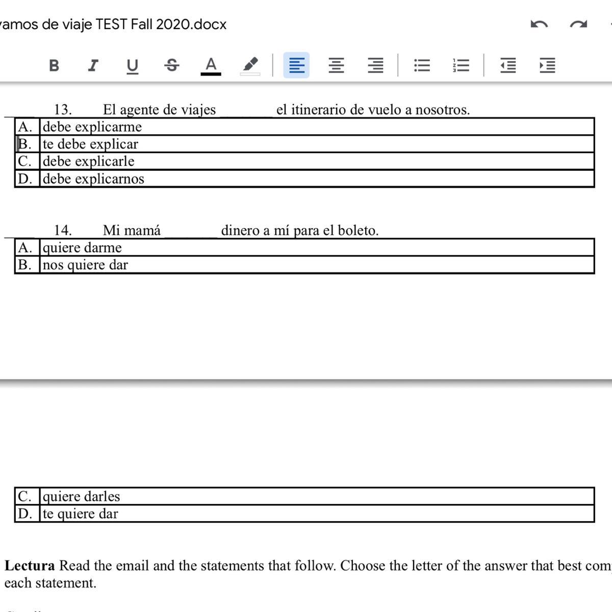 A. 1. el 2. yo 3. nosotras 4. usted 5. ustedes 6. tu 7. ellos 8.ella