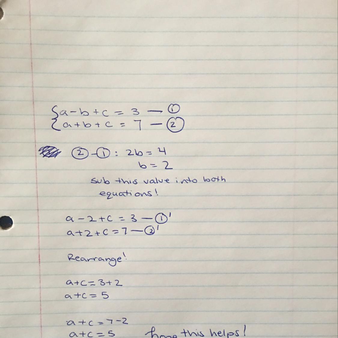 a+c=5. Please look at the attached image to see what I did