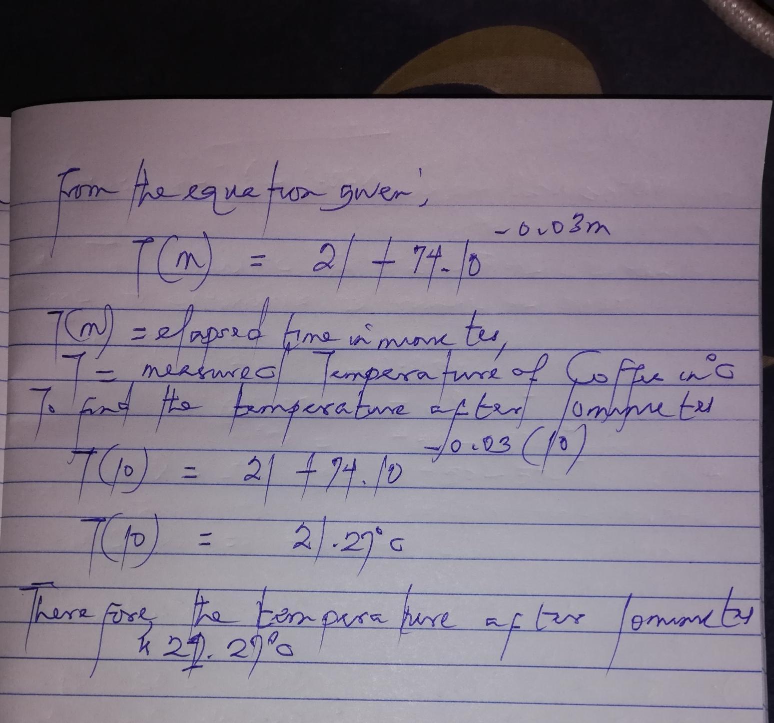 Plugging the value of m = 10minutes for the time to calculate the temperature at that time instant. The detailed steps is as shown in the attached file