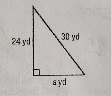 In this triangle, the legs are 24 and a, because these sides form the right angle. 30 is the hypotenuse because it is opposite the right angle.