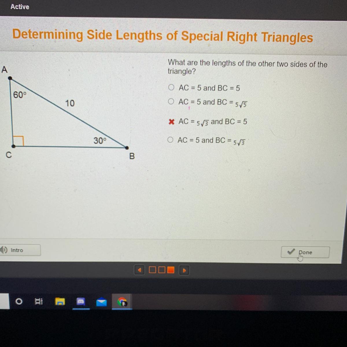 Therefore, AC is 5 while BC is 5√3.