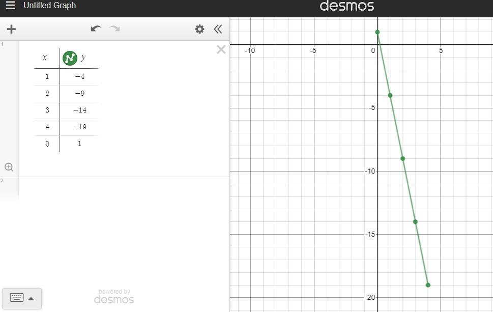 So the slope is -5 and the y-intercept is 1