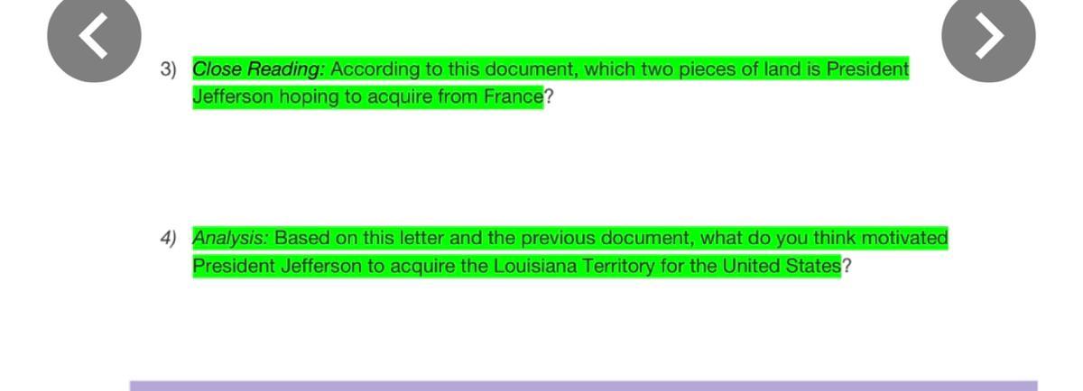 1. In the Louisiana Purchase event, Jefferson got two pieces of land from France to the East of the Mississippi River, New Orleans and Louisiana.