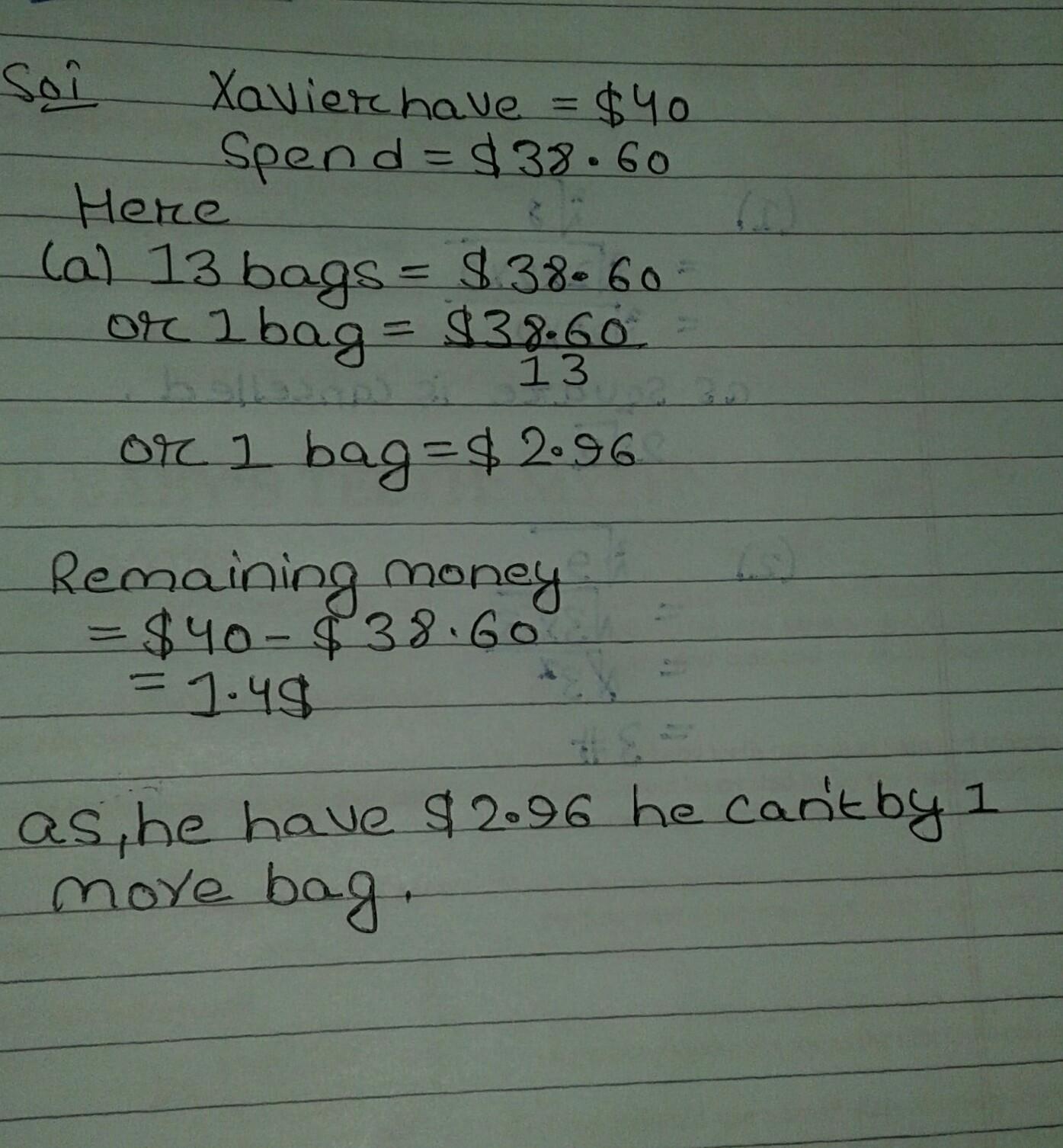 your answer is no he can't buy one more bag....
