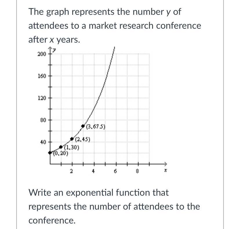 The graph represents the number y of attendees to a market research conference after x years.