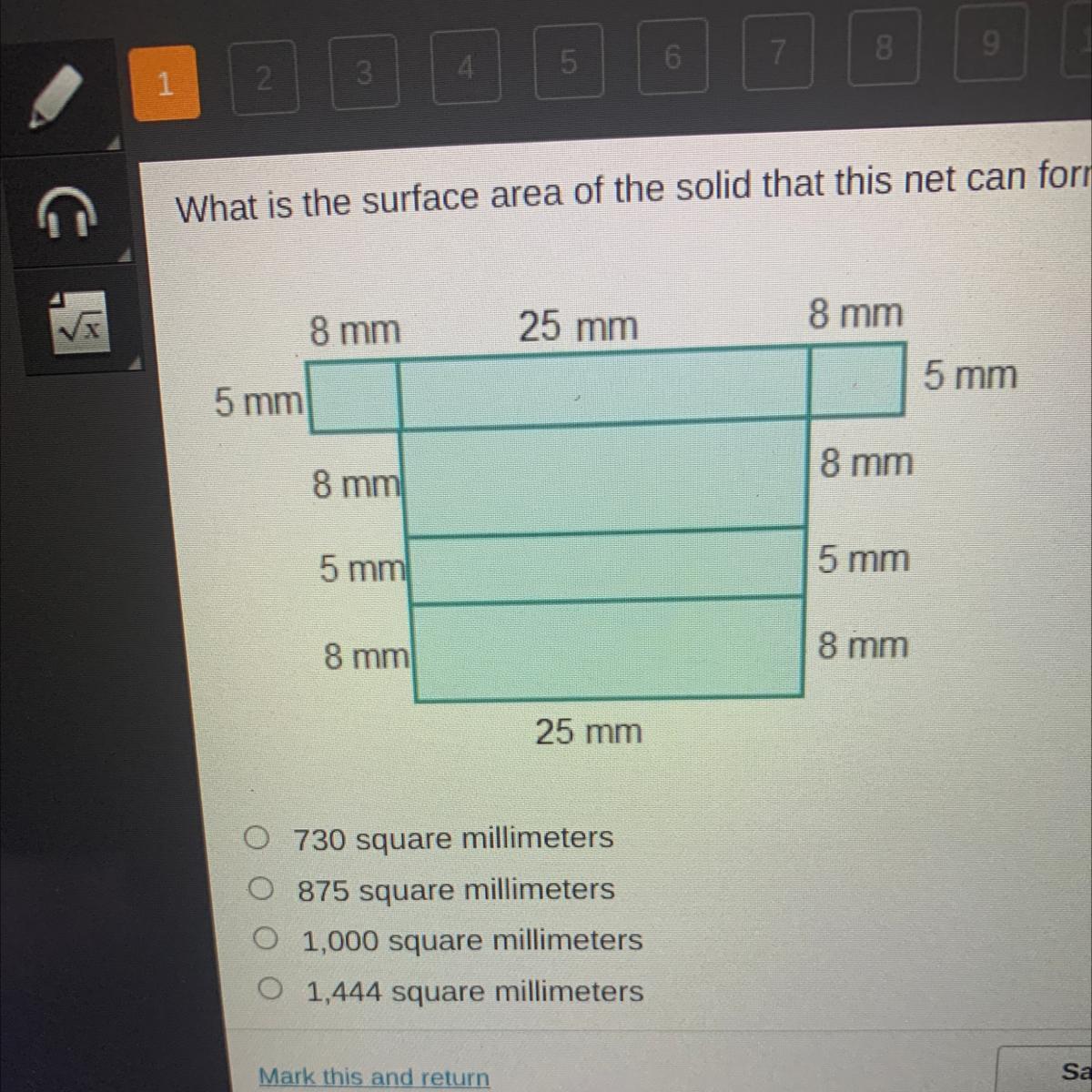 Square C's perimeter is 5+5+5+5 which is 20