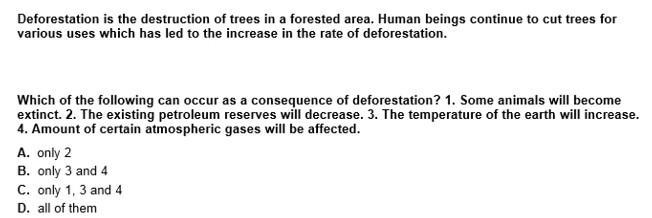 Also, since tree absorb some gases while releasing others into the atmosphere, when these trees are cut, there would be an imbalance of these atmospheric gases.
