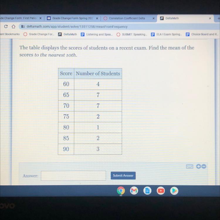 Mean = total sum of numbers / amount of numbers