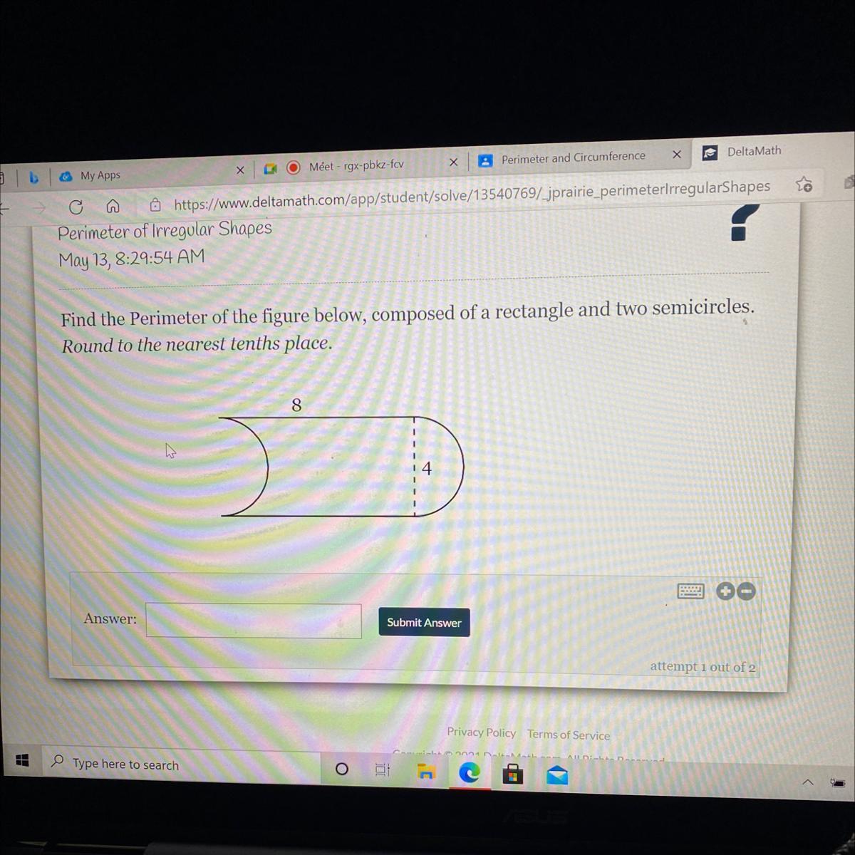 Perimeter of given figure = 2[πr] + 2[Length of long side]