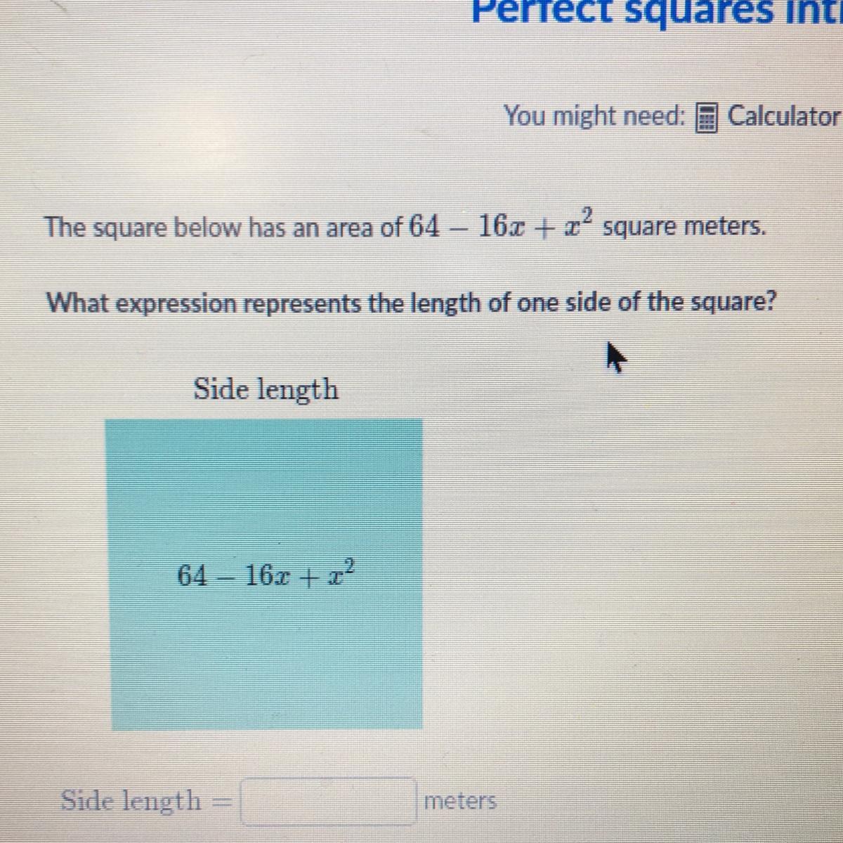 {x}^{2}  - 16x + 64 = 0