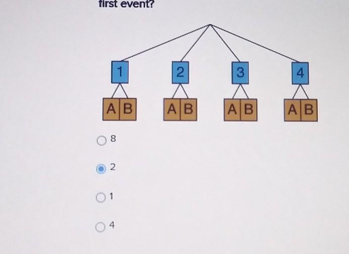 <em>There are four options. If 1 is selected, then we have two outcomes of the event. This means that there are two outcomes for the first event.</em>