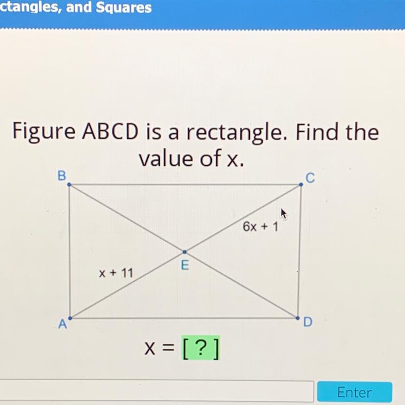 From this property of the rectangle ; we can observe in the given rectangle that