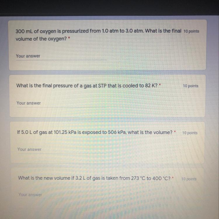 *Note => be sure to convert all temps to Kelvin when working empirical gas law problems. K = °C + 273