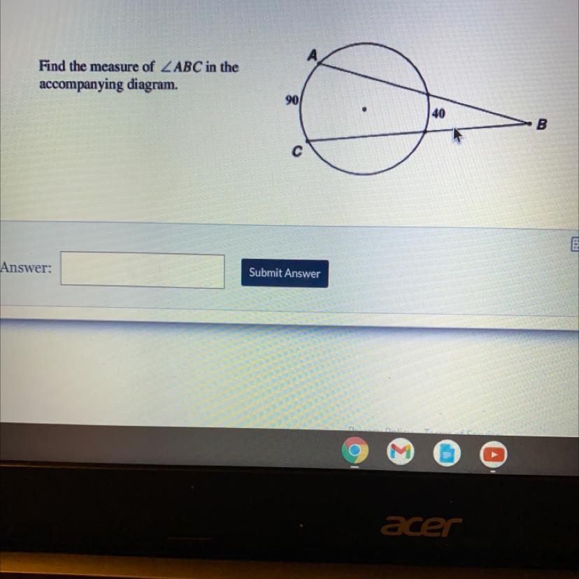 angle ABC = 180 - (40+x)/2 - (270-x)/2