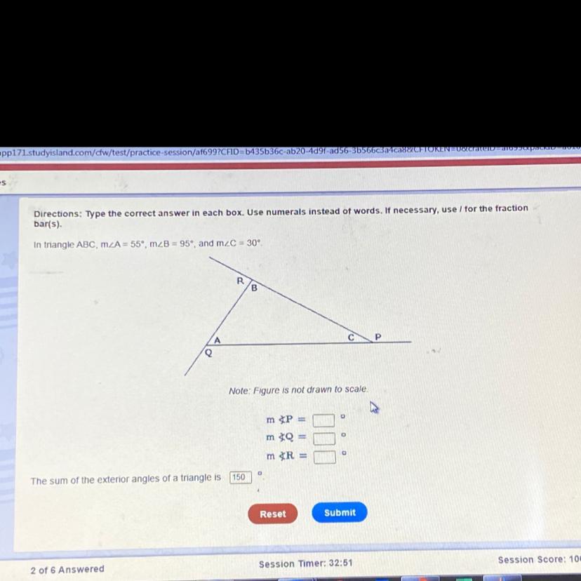 All triangles are equal to 180° so you would subtract the total (180) from the given