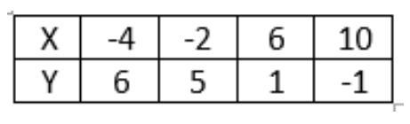 y = (-1/2)x + 4 is the equation of a straight line with y-intercept (0, 4) and slope -1/2.
