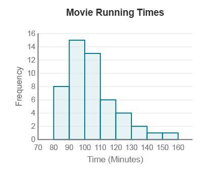From the attached histogram, the interval containing the most movies is the 90- 100 minutes interval.