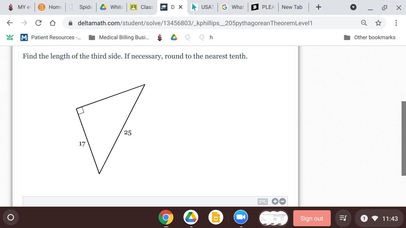 => 17² + B² = 25²