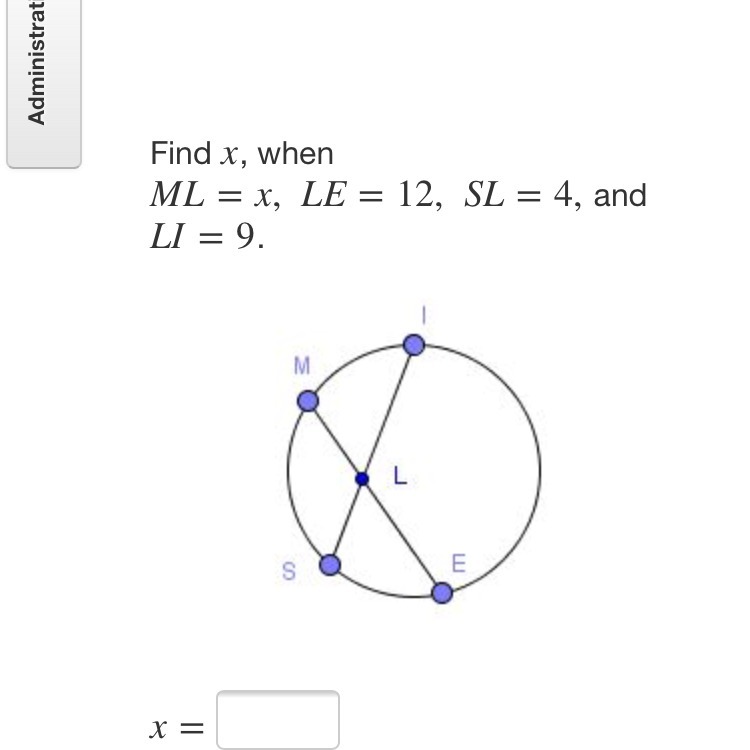 The intersecting chord theorem states that when 2 chords intersect, the product of the parts of one chord = the product of the 2 parts of the other chord.