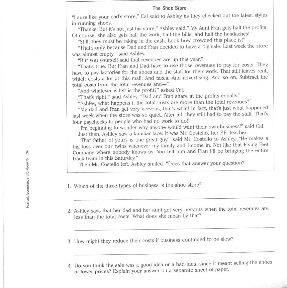 1. The three types of business mentioned are – Manufacturing, Retail store and School