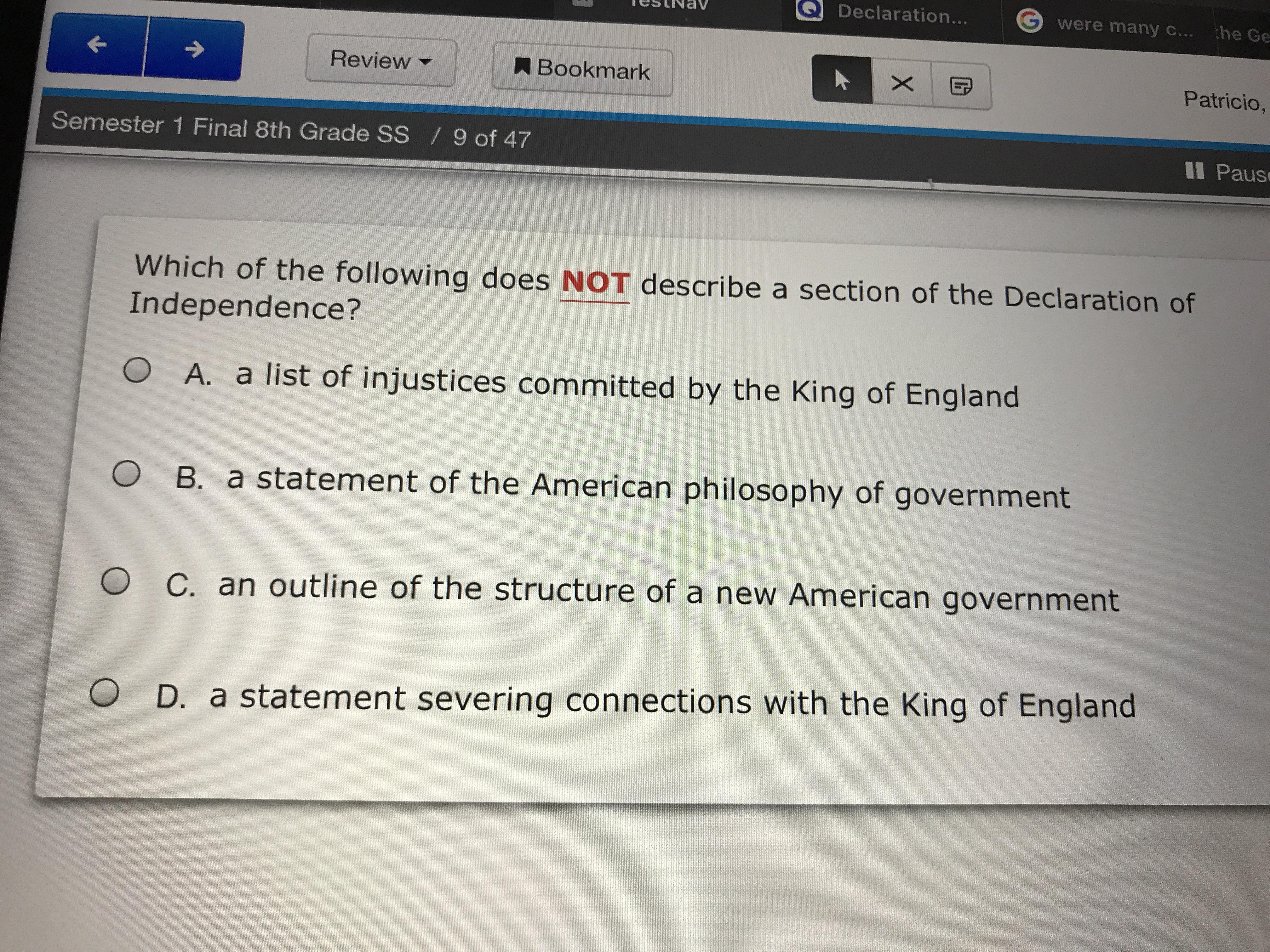 Just took the test. B. There was no clear winner.