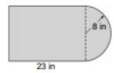 (radius is half the diameter so now you know the length of the dotted line is 16 in - this answer is for the rectangle)