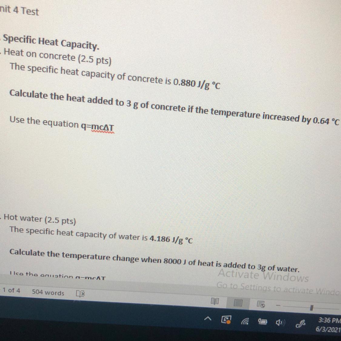 Sh = heat/(m x ΔT) = (180.8 J)/(22.44 g x 17.9°C) = 0.45 J/g.°C