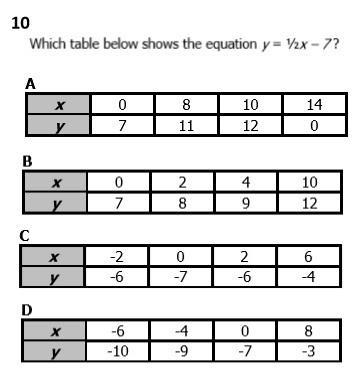 Since the outcome is -10, and that’s what the y value was on the table, you can assume D would be the answer.