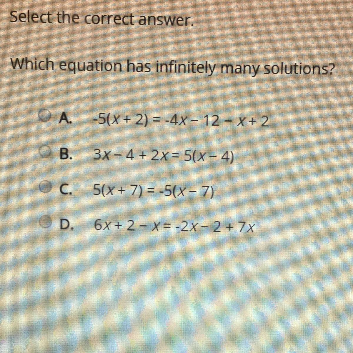 (15 POINTS) Select the correct answer.