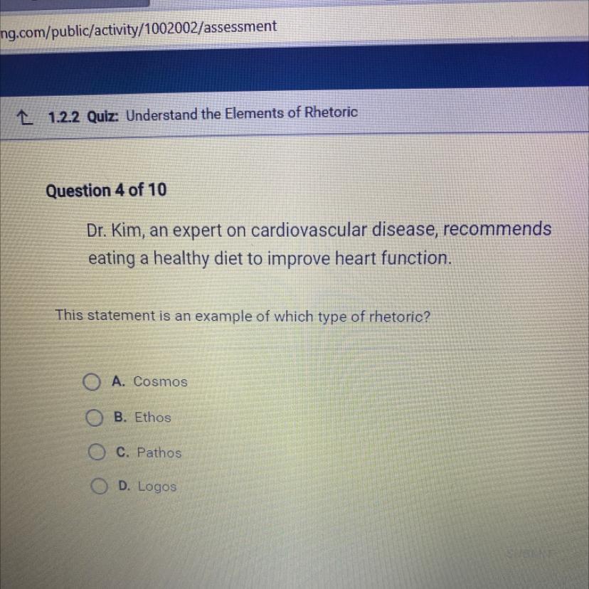 If I remember correctly, she said something like "wherefore art thou Romeo" which basically means why do you have to be Romeo? Remember, because of his family name they really couldn't be together. With that in mind, I would say "B" is the answer because, and a lot of students get tripped up on this, wherefore art thou does not mean where are you!