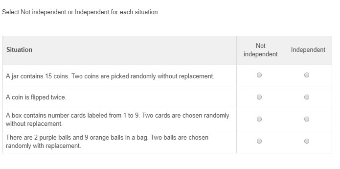 Independent events are the events which can't affected by the previous events.