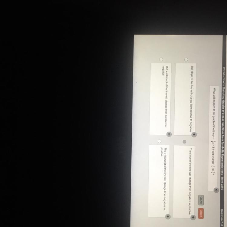 Therefore, if -⁵/4 is changed to ⁵/4, the slope has been changed from negative to positive. Therefore, the graph of the slope of the line will change from negative to positive.