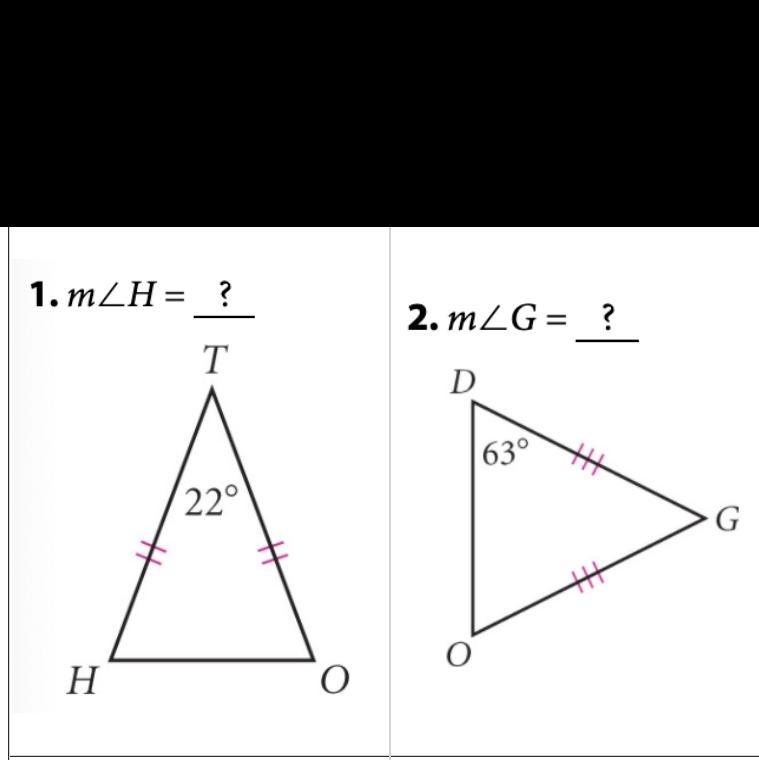 For any isosceles triangle, the base angles are congruent. The base angles are opposite the congruent sides. We see that angle O = angle H.