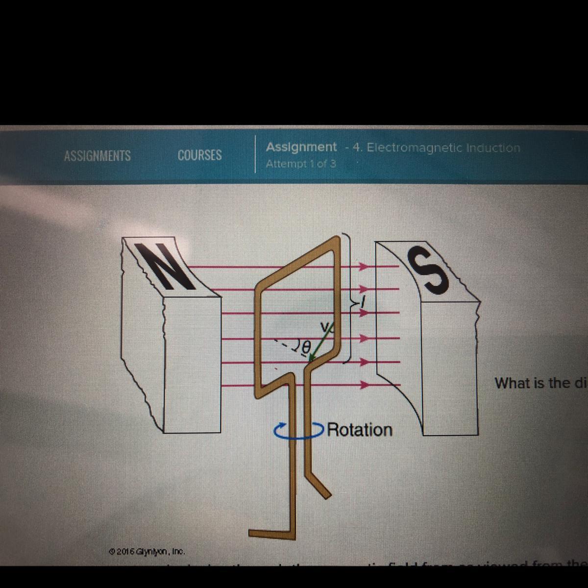 In this case, the magnetic field has to be perpendicular to the rotation of the current in the loop. Now, you can observe that the magnetic field is towards south in the graph. If we apply right-hand rule, we find that the rotation of the current has to be from west to east, that is, from front of the back of the image.