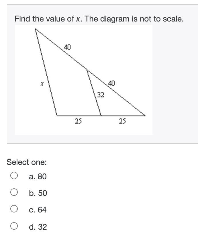 2. Use tangent because X is opposite of 40 and 25 is adjacent to angle 40. the equation would be Tan40/1 = X/25