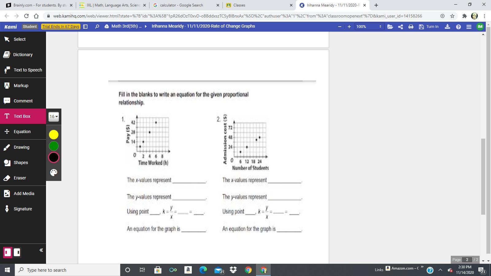 Plotting the equation on the graph, the value of x is,