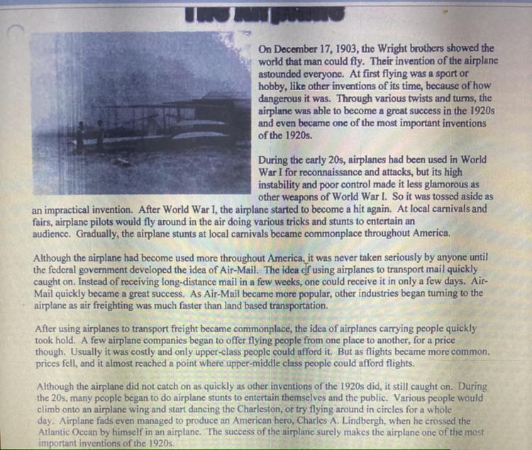 The Wright Brothers, Orville and Wilbur, were two American inventors, creators of the first motor plane that could fly autonomously, in 1903. From this invention, modern aviation began to develop, first as a means of transport and then as an instrument of war through the air forces. Thus, this allowed the United States to develop in two ways: first, by shortening distances throughout its vast territory; and then through the evolution and modernization of its armed forces, which gave it a vast advantage over the other nations of the world.