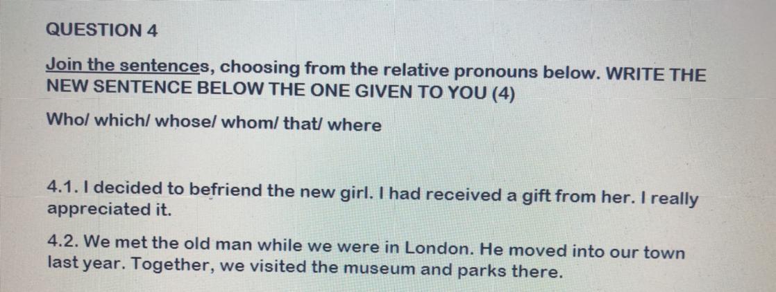 4.2 We met the old man who moved to our town last year while we were in London, where we visited the museum and parks together.