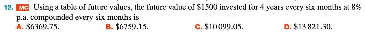 You are paying into the annuity 8 payments of $1500 each. That is a total input of 8 × $1500 = $12,000. You will be earning interest on that money, so the future value of the annuity is more than $12,000. Only one answer choice fits that description: