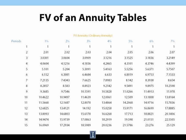The table is given in terms of interest rate per period and number of periods. The table assumes that money is invested at the same interval that interest compounding occurs.