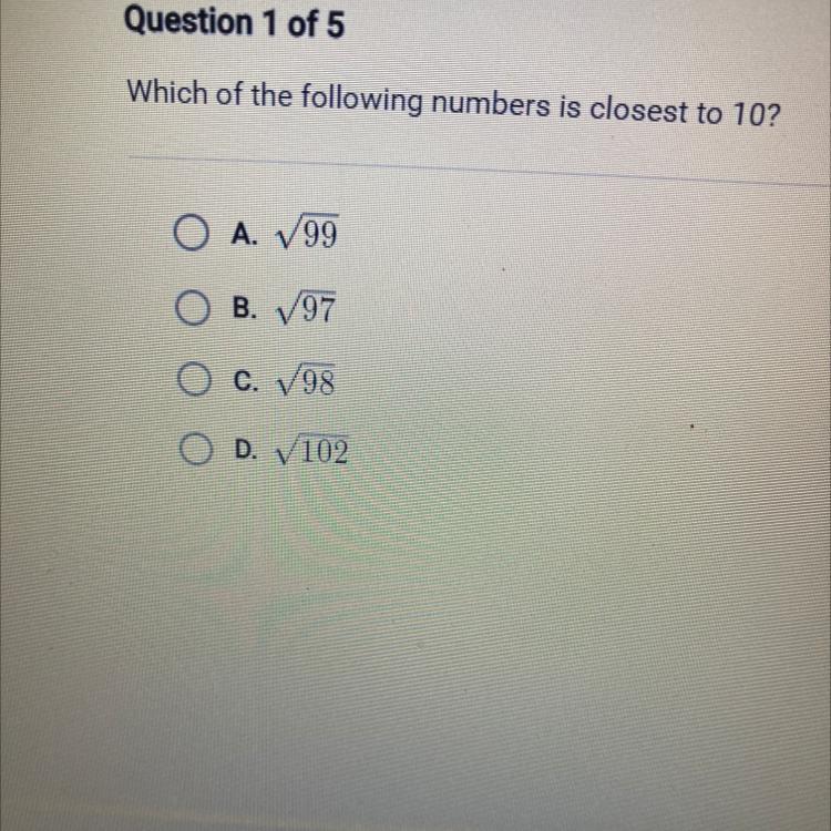 So √99 is closest to 10